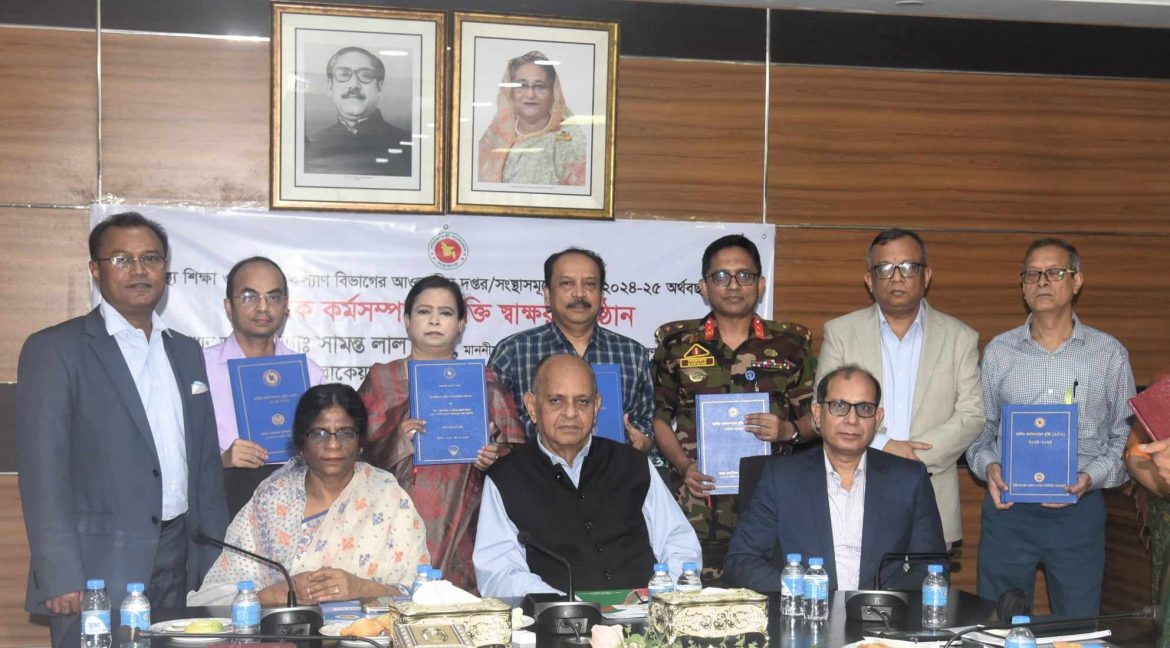 দেশের স্বাস্থ্য মন্ত্রণালয় ২০২৪-২৫ অর্থবছরের বার্ষিক কর্মসম্পাদন চুক্তি স্বাক্ষরিত হয়েছে। স্বাস্থ্যসেবা বিভাগের আওতাধীন ৮টি প্রতিষ্ঠান ও স্বাস্থ্য শিক্ষা ও পরিবার কল্যাণ বিভাগের ৫টি দপ্তরের প্রধানদের সঙ্গে নিজ নিজ বিভাগের সচিবরা চুক্তিতে স্বাক্ষর করেছেন।