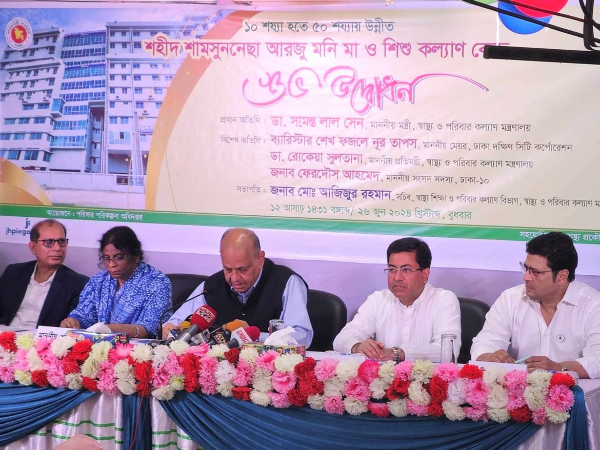 বুধবার (২৬ জুন) সকালে রাজধানীর  হাজারীবাগে শহীদ শামসুননেছা আরজু মনি মা ও শিশু কল্যাণ কেন্দ্র ১০ শয্যা থেকে ৫০ শয্যায় উন্নীতকরণ উপলক্ষে আয়োজিত উদ্বোধনী অনুষ্ঠানে প্রধান অতিথির বক্তৃতায় মন্ত্রী এ কথা বলেন।