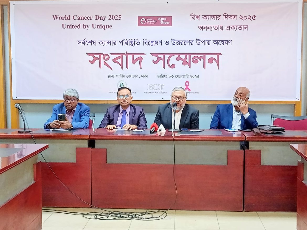বিশ্ব ক্যানসার দিবস উপলক্ষ্যে সোমবার বিকালে জাতীয় প্রেস ক্লাবে ওয়ার্ল্ড ক্যানসার সোসাইটি বাংলাদেশ, বাংলাদেশ ক্যানসার ফাউন্ডেশন ও বাংলাদেশ স্তন ক্যানসার সচেতনতা ফোরাম যৌথভাবে এক সংবাদ সম্মেলনের আয়োজন করে। সেখানে ক্যানসার আক্রান্তদের বাঁচাতে ও আক্রান্ত হওয়া প্রতিরোধে ৯ সুপারিশ করা হয়। সেগুলো হলো-জাতীয় ক্যানসার নিয়ন্ত্রণ কাউন্সিল পুরোপুরি অকার্যকর হয়ে আছে। একে পুনরুজ্জীবিত ও পুনর্গঠিত করতে হবে দলীয়করণ ও আমলাতান্ত্রিকতা থেকে মুক্ত করে, সব অংশীজনের সমন্বয়ে।জাতীয় ক্যানসার নিবন্ধন কর্মসূচি প্রণয়ন করতে হবে, যার আওতায় থাকবে প্রতি বিভাগীয় ক্যানসার হাসপাতাল ও অন্তত একটি করে উপজেলা। পাশাপাশি বেসরকারি ক্যানসার কেন্দ্র বা সংগঠনকে উৎসাহ ও সহযোগিতা দিতে হবে এই কাজে।সরকার, পেশাজীবী ও স্বেচ্ছাসেবী সংগঠন, এনজিও সবাই মিলে তিনটি প্রধান ক্যানসার (স্তন, জরায়ুমুখ, মুখগহ্বর) স্ক্রিনিং এর জন্য জাতীয় ক্যানসার স্ক্রিনিং কর্মসূচি প্রণয়ন ও বাস্তবায়ন করতে হবে।উপজেলা পর্যায়ে দুজন (একজন পুরুষ ও একজন নারী) চিকিৎসককে প্রশিক্ষণ দিয়ে সমাজভিত্তিক ও সংগঠিত ক্যানসার স্ক্রিনিং চালু করতে হবে। প্র্যোজনে এ জন্য পদ সৃষ্টি/নির্ধারিত করতে হবে।সব অংশীজনগণকে সম্পৃক্ত করে ক্যানসার সচেতনতা কার্যক্রম পরিচালিত করতে হবে। এজন্য সুনির্দিষ্ট নীতিমালা ও মূল্যায়নের ভিত্তিতে স্বচ্ছতার ভিত্তিতে বাছাইকৃত বেসরকারি ও স্বেচ্ছাসেবী সংগঠনগুলিকে অর্থ বরাদ্দ কিংবা প্রণোদনা দিতে হবে।সরকারি খাতে ক্যানসার নির্ণয় ও চিকিৎসা সুবিধা বিকেন্দ্রীকরণ ও সম্প্রসারণ করতে হবে। সর্বজনীন স্বাস্থ্য সুরক্ষার দলিলে স্বাক্ষরকারী হিসেবে ক্যানসারের মতো দীর্ঘমেয়াদি ও ব্যয়বহুল চিকিৎসার দায়িত্ব মূলত সরকারের। সরকারি হাসপাতালে চিকিৎসা সুবিধার অপ্রতুলতা বিবেচনায় নিয়ে সরকার স্ট্র্যাটেজিক পারচেজের মাধ্যমে বেসরকারি হাসপাতালে স্বল্প খরচে চিকিৎসার ব্যবস্থা করতে পারে।যন্ত্রপাতি ক্রয়ে ট্যাক্স/লেভি ছাড়ের বিনিময়ে বেসরকারি হাসপাতালের ১০% সেবা দরিদ্র রোগীদের বিনামূল্যে পাওয়ার কথা থাকলেও বাস্তবে তার প্রয়োগ নেই। সরকারের এটা নিশ্চিত করা উচিত।একজন স্বজনসহ ক্যানসার রোগীদের যাতায়াত ভাড়া মওকুফ করা উচিত।