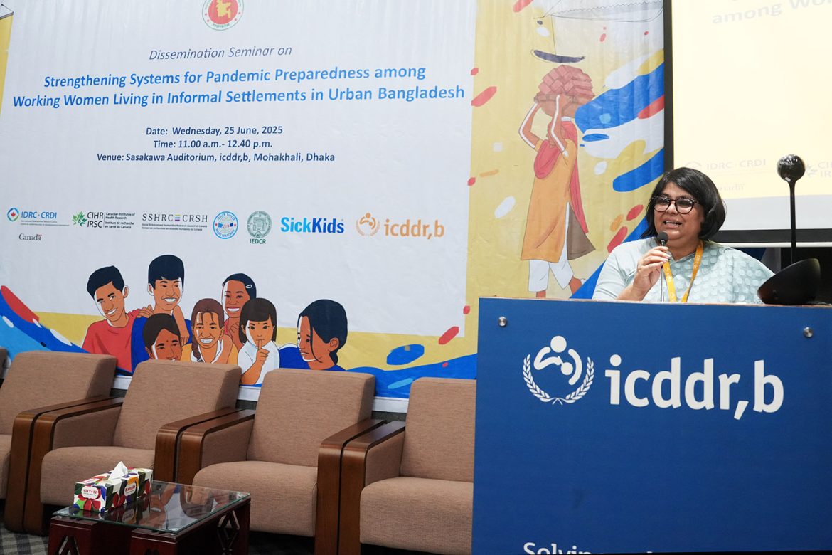 বুধবার রাজধানীর মহাখালীর মহাখালীতে আন্তর্জাতিক উদরাময় গবেষণা কেন্দ্র, বাংলাদেশের (আইসিডিডিআরবি) আয়োজিত সাসাকাওয়া অডিটোরিয়ামে অনুষ্ঠিত ‘ওম্যান রাইজ’ শীর্ষক এক সেমিনারে প্রকাশিত গবেষণা ফলাফলে এমন চিত্র উঠে এসেছে। ‘বাংলাদেশের শহরের অনানুষ্ঠানিক বসতিগুলিতে বসবাসকারী কর্মজীবী মহিলাদের মধ্যে বৈশ্বিক মহামারী প্রস্তুতির জন্য সিস্টেম শক্তিশালীকরণ’ শীর্ষক এই সেমিনারে সহযোগিতা করেন সরকারের রোগতত্ত্ব, রোগ নিয়ন্ত্রণ ও গবেষণা ইনস্টিটিউট (আইইডিসিআর), স্বাস্থ্য ও পরিবার কল্যাণ মন্ত্রণালয় এবং কানাডার সিককিডস। গবেষণা পরিচালনা করেছে আন্তর্জাতিক স্বাস্থ্য গবেষণা প্রতিষ্ঠান আইসিডিডিআর,বি। আর এই গবেষণায় আর্থিক সহায়তা দিয়েছে কানাডার ইন্টারন্যাশনাল ডেভেলপমেন্ট রিসার্চ সেন্টার।গবেষণা ফলাফল উপস্থাপন করেন আইসিডিডিআর,বির গবেষক ডা. সোহানা শফিক।