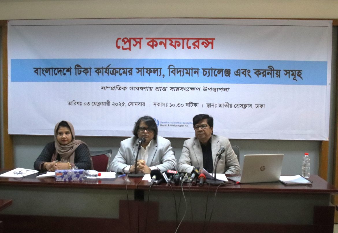 সোমবার সকালে জাতীয় প্রেসক্লাবে এক সংবাদ সম্মেলনে এ তথ্য জানানো হয়। অনুষ্ঠানে মূলত স্বাস্থ্য সুরক্ষা ফাউন্ডেশন ও ইউনিসেফ বাংলাদেশের যৌথ পরিচালনায় ‘বাংলাদেশে টিকা কার্যক্রমের সাফল্য, বিদ্যমান চ্যালেঞ্জ এবং করণীয়’ শীর্ষক গবেষণার ফলাফল ফলাফলে এ তথ্য তুলে ধরা হয়। গবেষণাটি ২০১৪ সালের ফেব্রুয়ারি থেকে সেপ্টেম্বর পর্যন্ত পরিচালনা করা হয়।