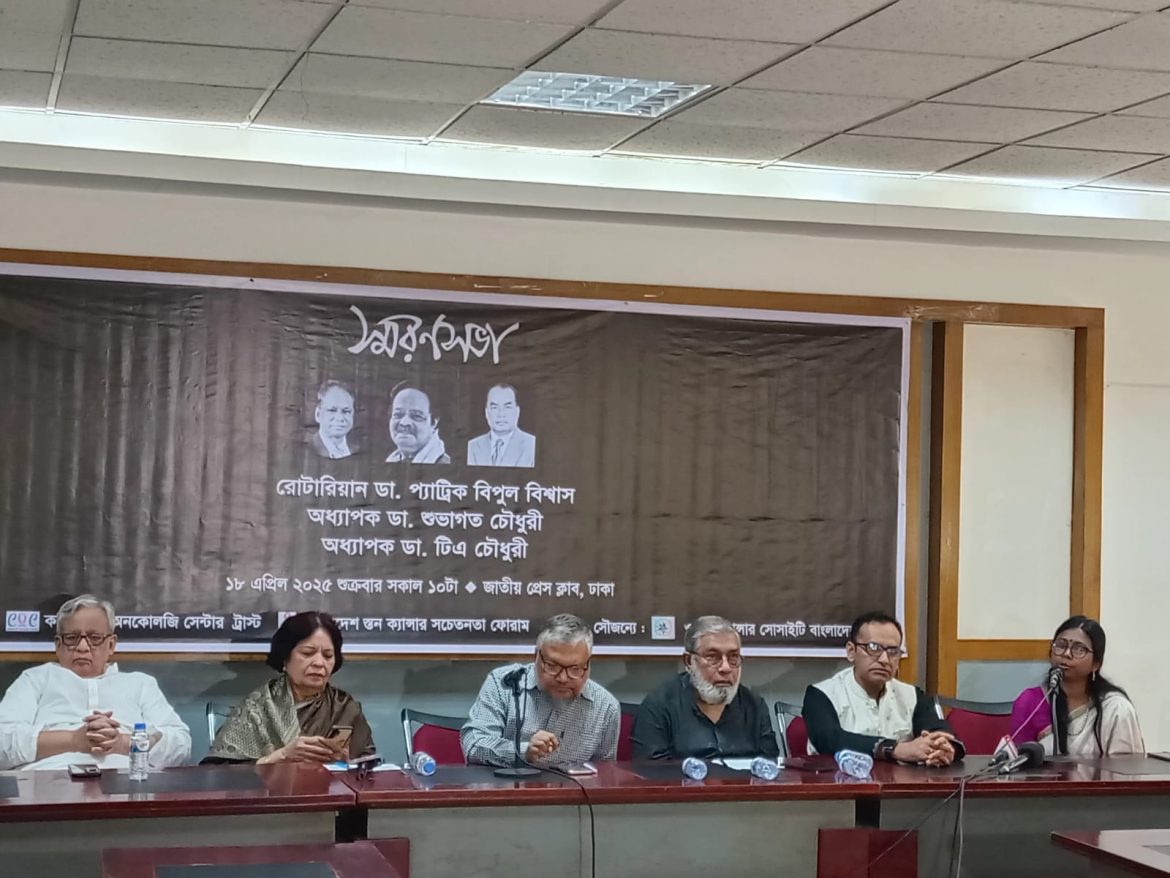 শুক্রবার সকালে জাতীয় প্রেসক্লাবে আয়োজিত খ্যাতিমান তিন চিকিৎসকের কর্মময় জীবন ও মানবিক অবদানের স্মরণে আয়োজিত এক আলোচনা সভায় তারা এসব কথা বলেন।