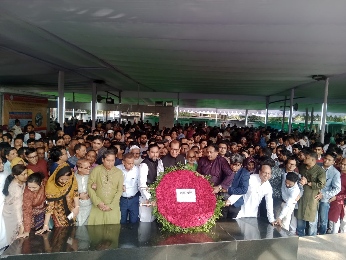 শুক্রবার (১৫ মার্চ) সকাল ৮টা ৩০ মিনটে প্রথমে ধানমন্ডি ৩২ নম্বরে বঙ্গবন্ধুর প্রতিকৃতিতে এবং পরবর্তীতে বনানী কবরস্থানে বঙ্গবন্ধুর পরিবারের শহীদ সদস্যবর্গের প্রতি গভীর শ্রদ্ধাঞ্জলি নিবেদন করে এইসব কথা বলেন উপাচার্য।